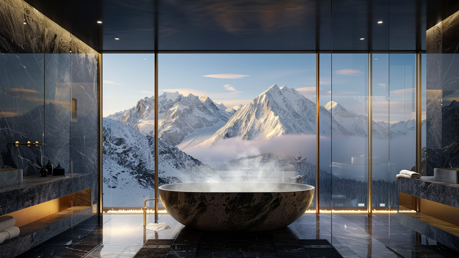 Warmth is introduced through light and reflection - never excess.